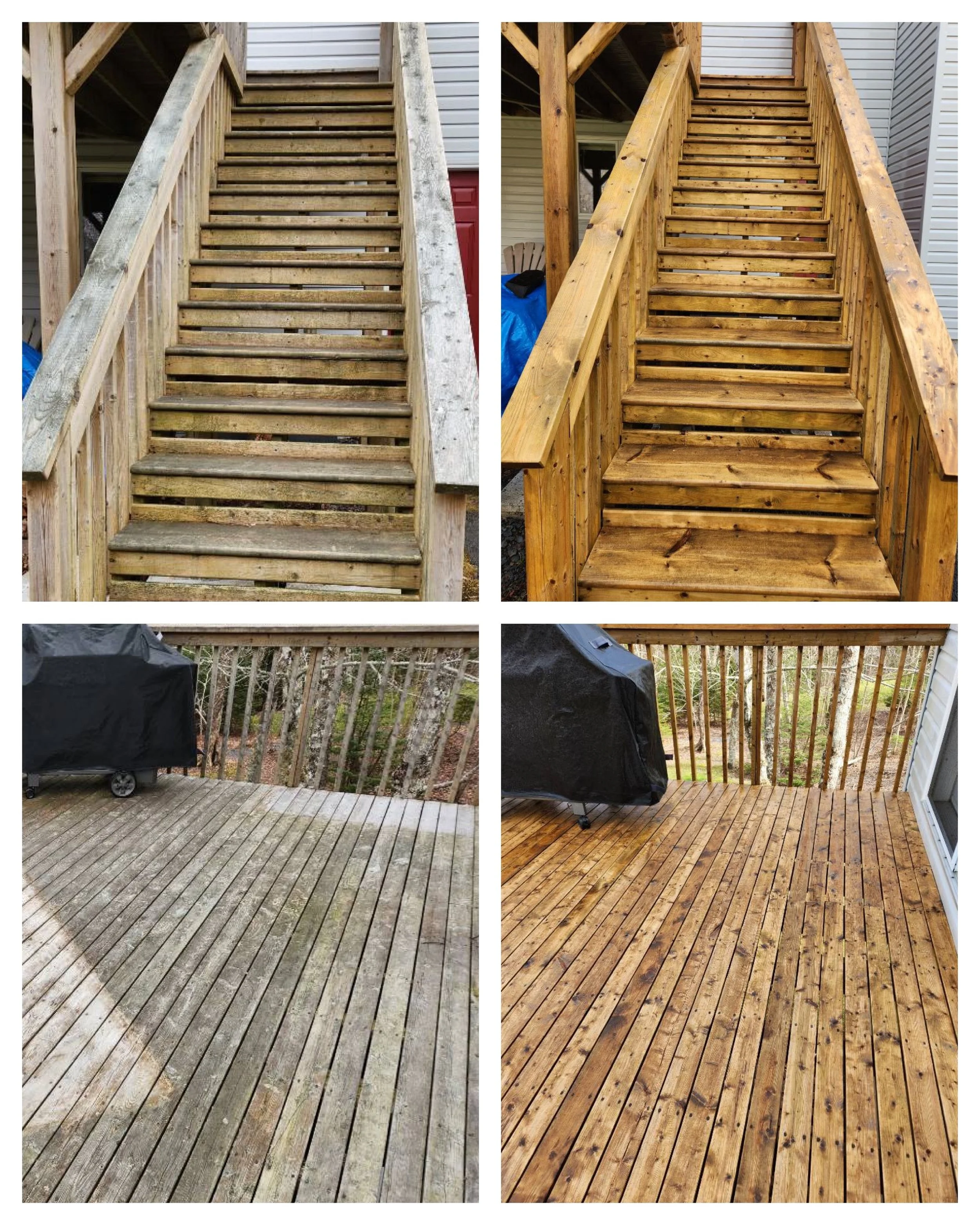 UV exposure damages wood the same way it damages our skin. Sunshine, rain, snow, and mist are the culprits and we get plenty of harsh weather in Nova Scotia.